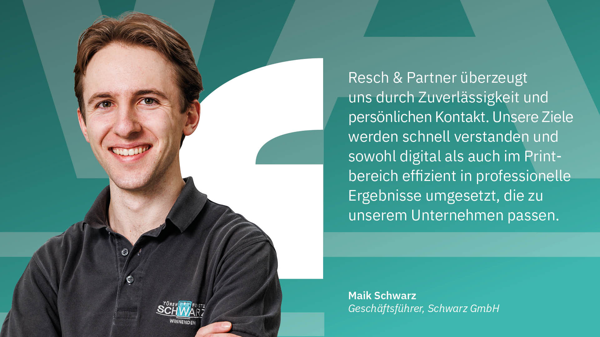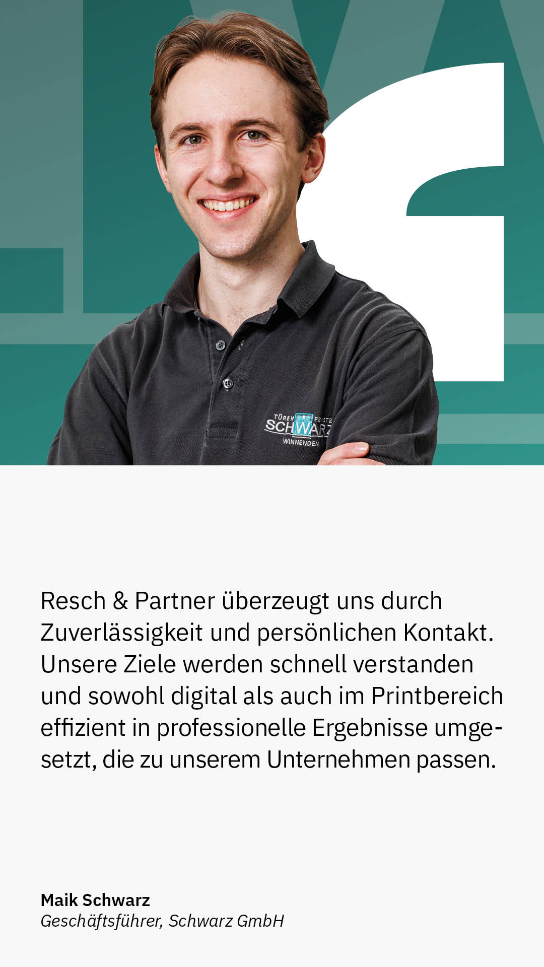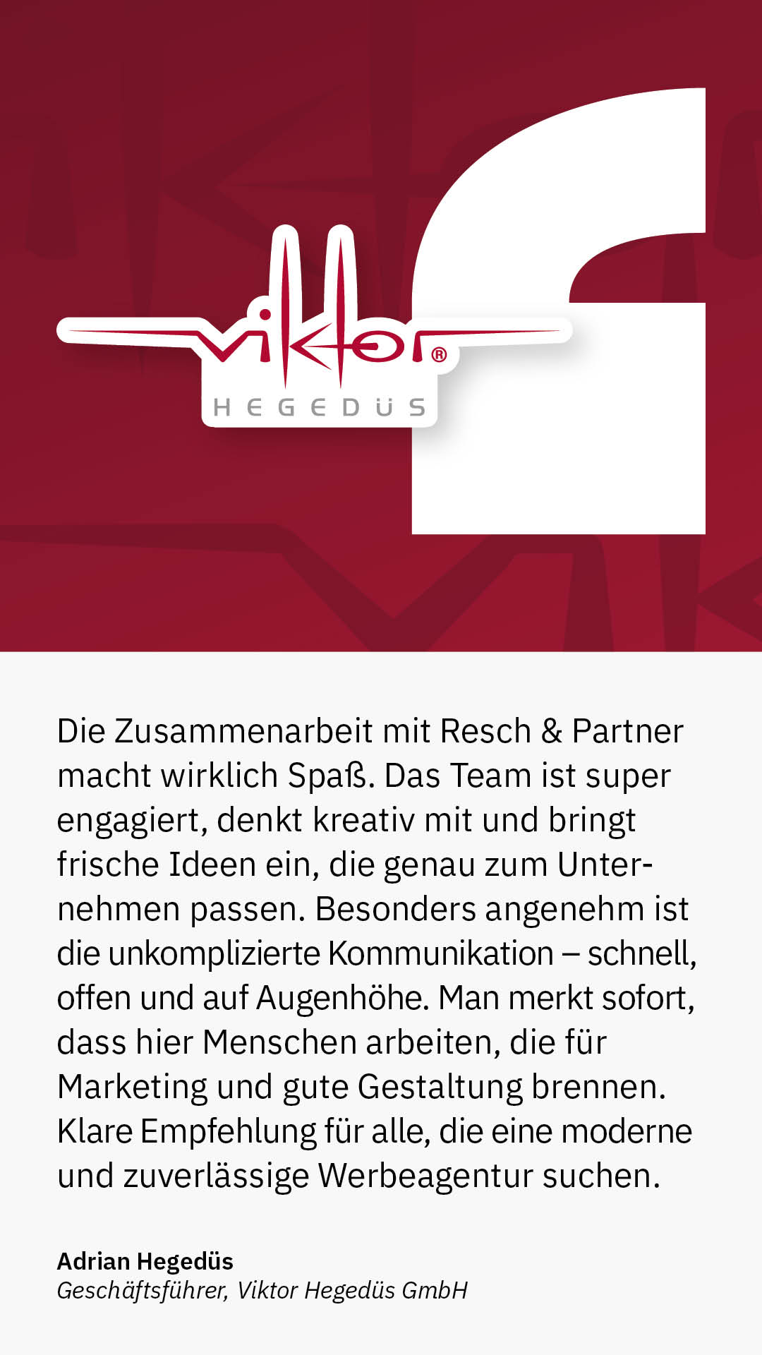 In unserem Team bei Resch & Partner entwickeln wir Marken, Corporate Designs, Kampagnen, Websites und Messeauftritte. Einige Kunden betreuen wir in Spezialdisziplinen, andere Kunden wiederum nutzen das komplette Know-how unserer crossmedialen Agentur. Wie auch immer Sie sich entscheiden, Resch & Partner ist Ihr kompetenter und leistungsstarker Partner.