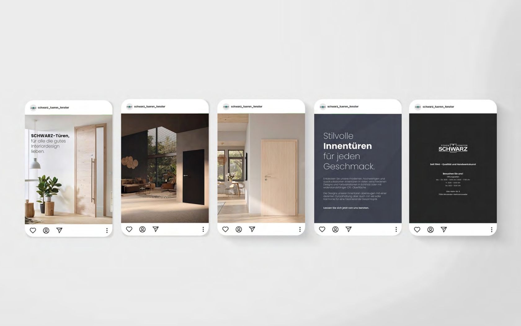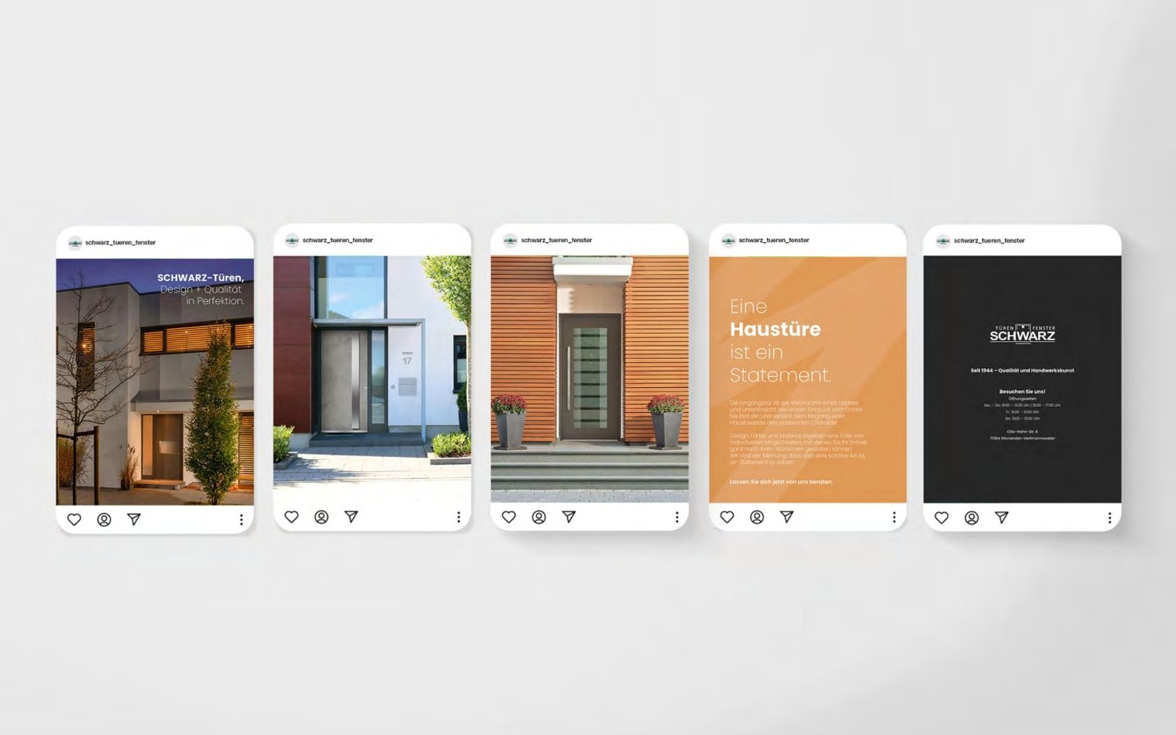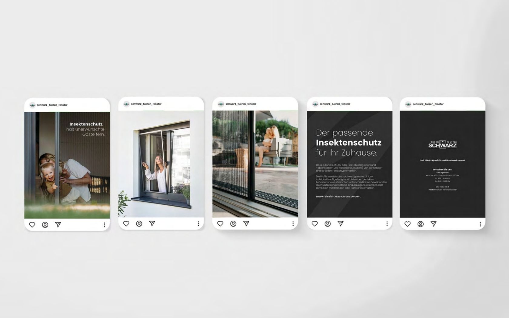 Ziel war es, eine konsistente und hochwertige Social-Media-Präsenz für SCHWARZ Türen & Fenster aufzubauen – um digital sichtbar zu werden, Vertrauen zu schaffen und das Leistungsportfolio attraktiv darzustellen.